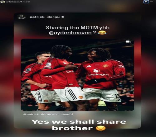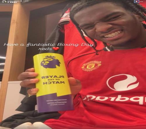 英超第18輪,曼聯(lián)主場1-0擊敗紐卡斯?fàn)柭?lián),此役表現(xiàn)出色的曼聯(lián)后衛(wèi)艾登-海文被現(xiàn)場評為全場最佳球員,并在社交媒體曬出了獎杯,多古在社交媒體詢問是否可以分享全場最佳,海文回復(fù)道:“當(dāng)然?!?/p>