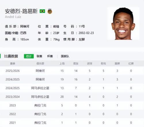 我是真佩服阿馬多拉之星的眼光,穆帥冬窗首簽卡布拉爾,是人家從德丙免簽的。而這個安德烈-路易斯,是三年前從巴西弗拉門戈租借來的,當時還只有20歲,一個賽季后發(fā)現靠譜,就60萬歐元買下,又一年后220萬歐元轉手給里奧阿維,合同簽到2029年。如今也被穆里尼奧相中,不知道是緣分,還是選材標準契合。