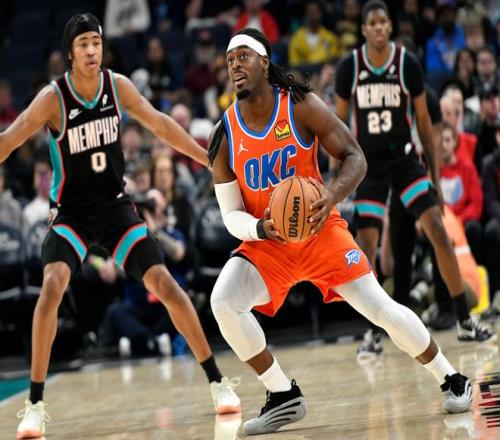 上半場灰熊最多時領(lǐng)先雷霆21分之多,雷霆是防守效率聯(lián)盟第一的球隊,可上半場還是讓灰熊拿到65分這已經(jīng)說明沒有SGA的雷霆判若兩隊。杰威、米切爾、威金斯、多爾特、卡爾森的先發(fā)陣容進(jìn)攻效率也不佳,尤其是球隊第二巨頭杰威沒有什么進(jìn)攻的欲望。