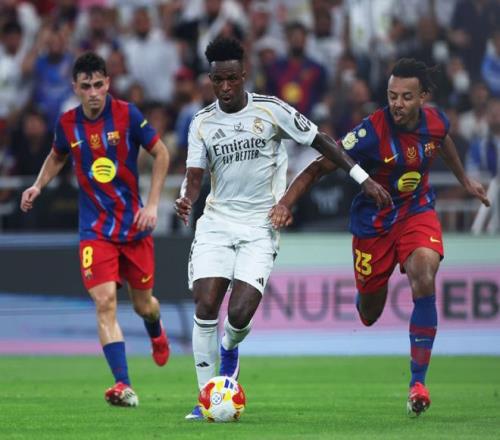 隨著主裁一聲哨響,兩支球隊(duì)就拉開(kāi)架勢(shì)對(duì)攻,第34分鐘亞馬爾妙傳,可惜拉菲尼亞的單刀機(jī)會(huì)踢偏,不過(guò)2分鐘之后,他就彌補(bǔ)了遺憾,左路帶球殺入禁區(qū)后低射遠(yuǎn)角建功,幫助巴薩取得了1-0的領(lǐng)先,第47分鐘維尼修斯還以顏色,左路單挑巴薩整條后防,打入一記天秀進(jìn)球,終結(jié)長(zhǎng)達(dá)3個(gè)月的進(jìn)球荒,將比分追至1平。