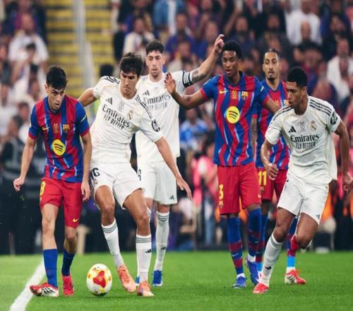 在上賽季的西超杯決賽,巴塞羅那5-2送給銀河戰(zhàn)艦一場(chǎng)恥辱性的失利問(wèn)鼎冠軍,為了能夠?qū)崿F(xiàn)衛(wèi)冕的目標(biāo),弗里克此役也是毫無(wú)保留,祭出了433的體系,霍安加西亞鎮(zhèn)守龍門,巴爾德、加西亞、庫(kù)巴西和孔德構(gòu)筑后防,佩德里、德容和費(fèi)爾明坐鎮(zhèn)中場(chǎng),拉菲尼亞、萊萬(wàn)和亞馬爾組成進(jìn)攻三叉戟。