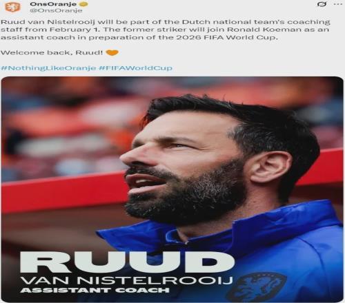 官方:荷蘭宣布范尼進(jìn)入教練組,他將擔(dān)任科曼的助教。